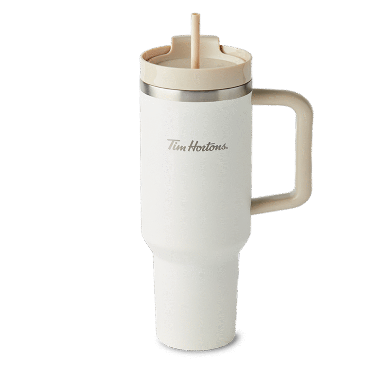 Your new favourite accessory of the season is here and it’s the 16oz Tim Hortons Travel Mug in a sleek forest green. Keeps drinks cold for up to 24 hours and hot for up 6 hours.