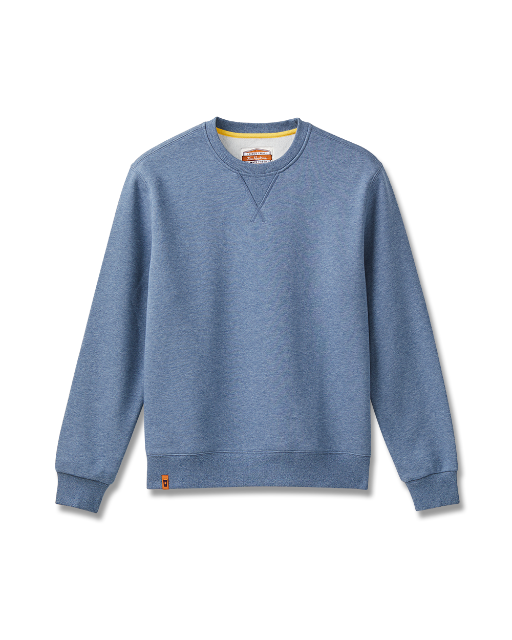 This denim heather blue crewneck brings all-day comfort in a relaxed fit. Pair with matching joggers for the full Canadian denim tuxedo loo. Soft. constructed to last. and unapologetically cozy.